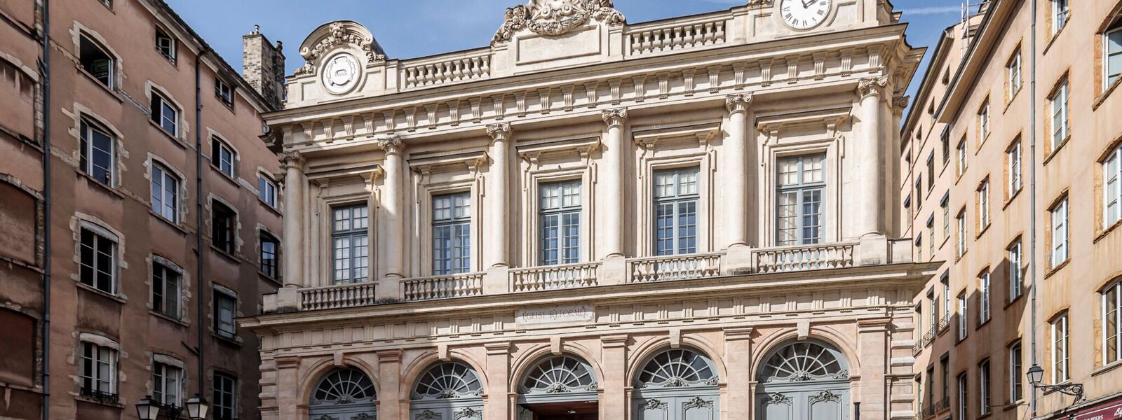 Built from 1748 to 1750 by architect Jean-Baptiste Roche, though the plans and elevations were provided by Soufflot. The Loge du Change was used by traders in Lyon until the Revolution and then abandoned. It was handed over to the Protestants in 1803.