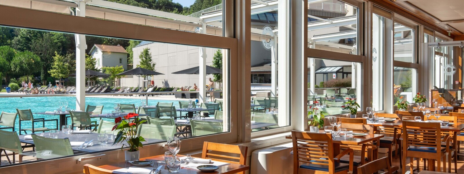 In fine weather, enjoy the exceptional atmosphere of the terrace by the Olympic-size swimming pool!